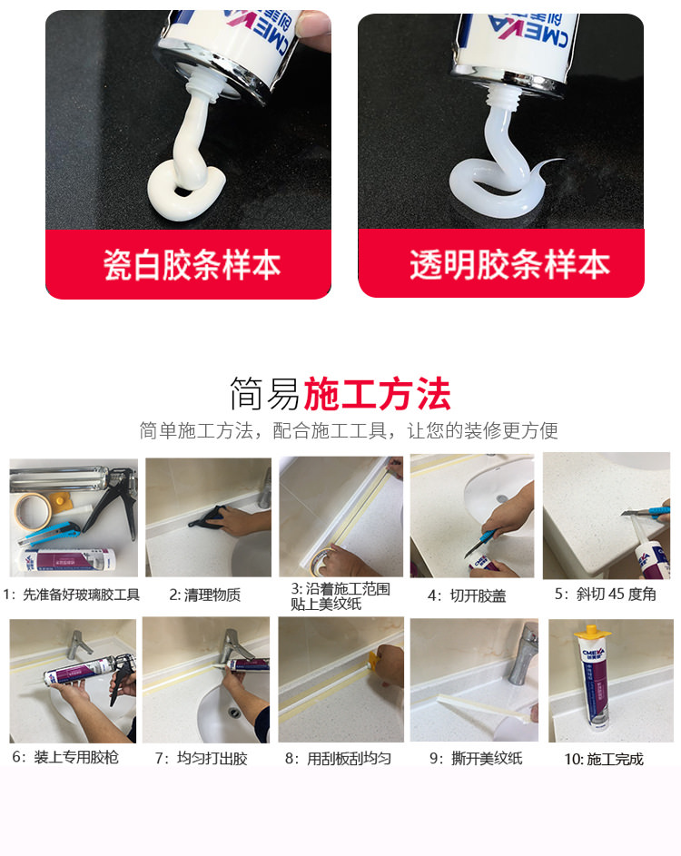 1、創美家-多用途系單組份、中性脫醇型、高模量、室溫固化硅酮密封膠。